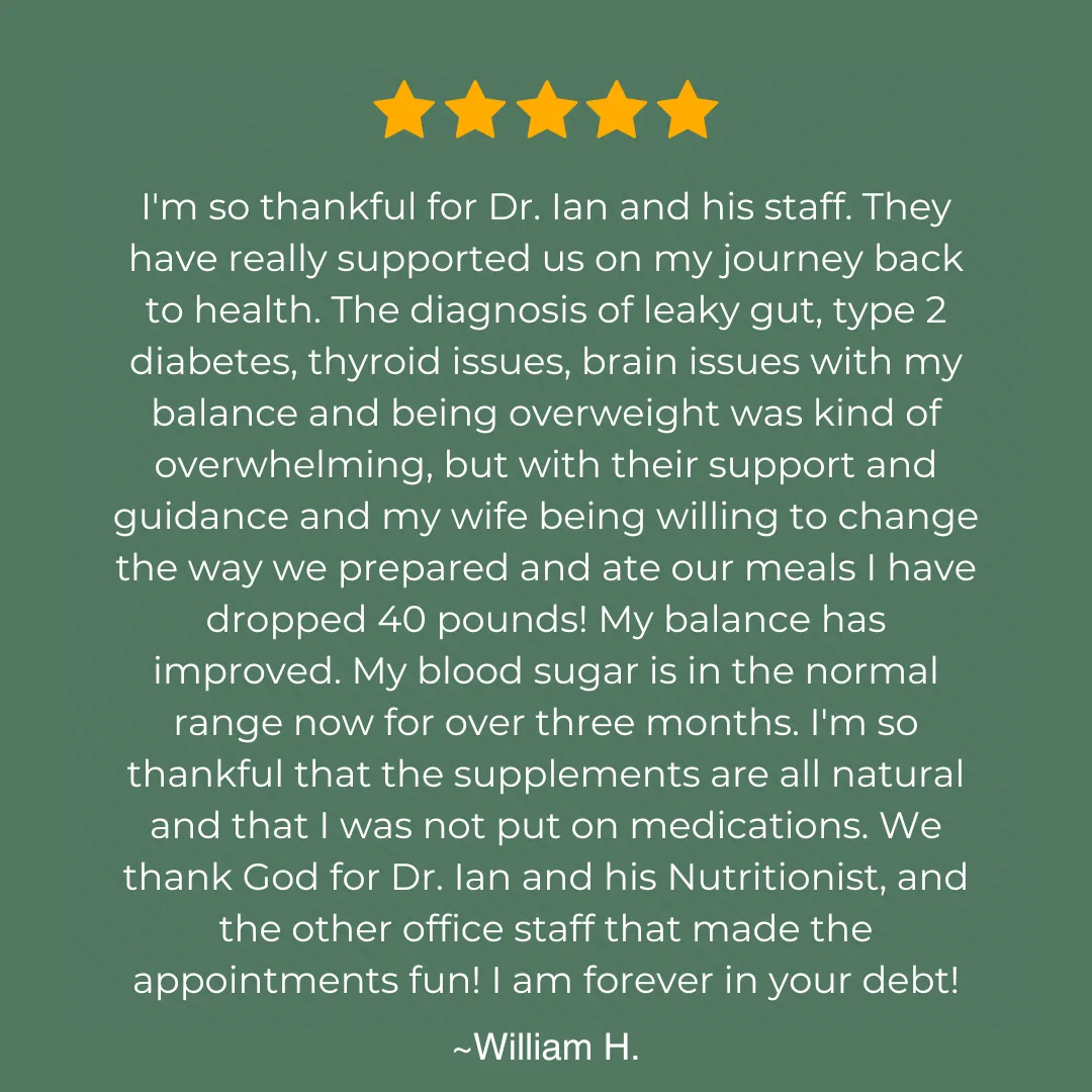"Dr. Ian's team supplied me with the expert advice on detoxification, gut healing, supplements, and dieting I needed. With their help I have reach a phenomenal weight loss of 100lbs. When you read “LET YOUR HEALTH SOAR” this team truly knows how to get us there! Looking forward to letting my health soar even higher as I continue to work with the Dr. Autoimmune team." - John Gibney
