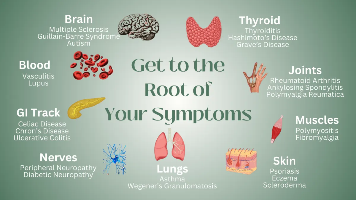 Disorders like Crohn's, Hashimoto’s, Psoriasis, Rheumatoid Arthritis, and Multiple Sclerosis